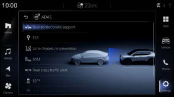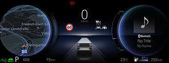 Greifen Sie auf dem 10,25-Zoll-Bildschirm der Instrumentenanzeige schnell und unkompliziert auf Fahrzeug-Informationen zu und steuern Sie auf dem 10,1-Zoll-Farb-LCD-Display in der Mitte eine Vielzahl an Funktionen ganz einfach über Registerkarten.