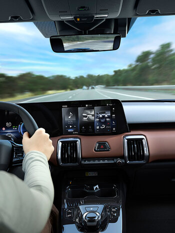 Greifen Sie auf dem 10,25-Zoll-Bildschirm der Instrumentenanzeige schnell und unkompliziert auf Fahrzeug-Informationen zu und steuern Sie auf dem 10,1-Zoll-Farb-LCD-Display in der Mitte eine Vielzahl an Funktionen ganz einfach über Registerkarten.