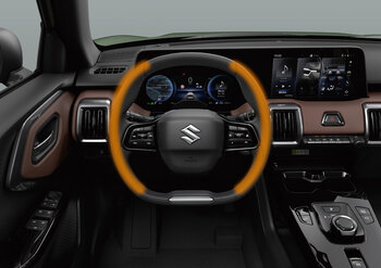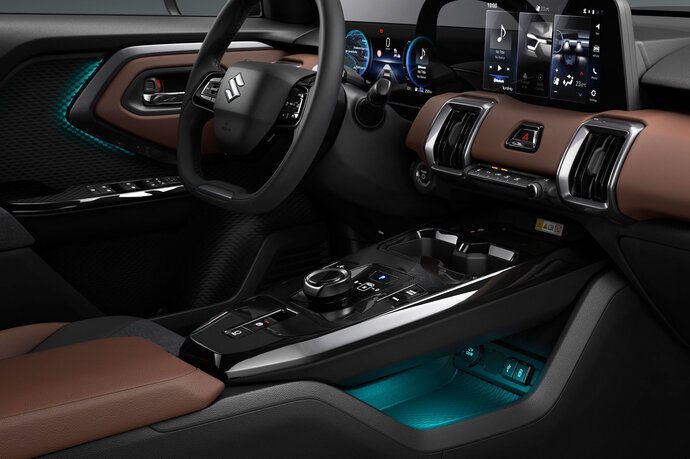 Das Interieur-Design verbindet den Hightech-Charakter des e VITARA als Elektrofahrzeug mit seiner Abenteuer- und SUV-Kompetenz durch