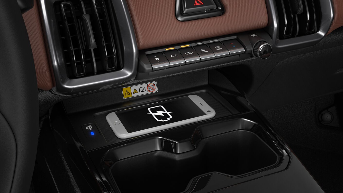 Ein Qi™2 Ladepad* im vorderen Bereich der Mittelkonsole ermöglicht bequemes, kabelloses Laden deines Smartphones.