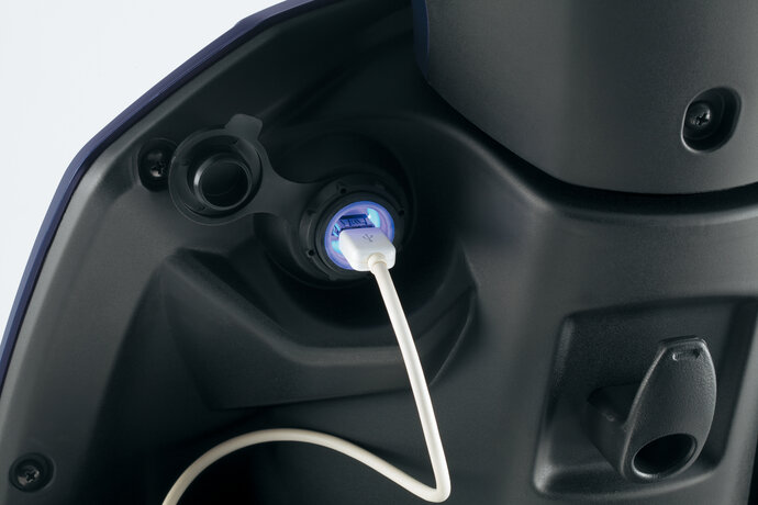 - USB-Anschluss Die Verwendung des USB-Anschlusses im Leerlauf oder bei stehendem Motor kann die Batterie entladen. Achte auf den Ladezustand der Batterie, wenn du den USB-Anschluss verwendest. Verwende den Anschluss nicht, wenn du das Motorrad wäschst oder wenn es regnet. Verschließe den USB-Anschluss mit der Staubkappe, wenn der USB-Anschluss nicht verwendet wird.