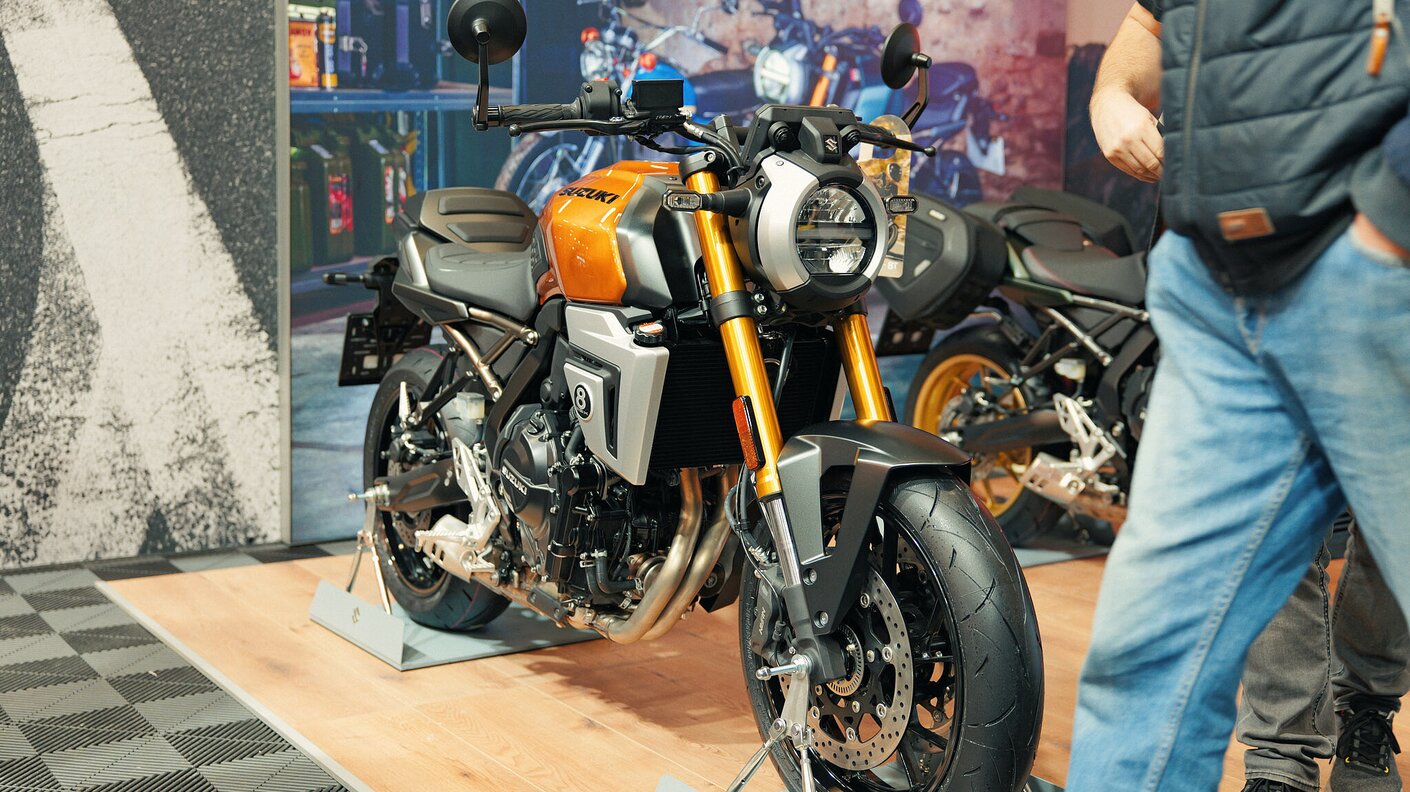 Unser Suzuki Stand umfasste 270 m² Ausstellungsfläche, auf der 27 aktuelle Suzuki Motorräder präsentiert wurden. Vom Sport- bis Adventure-Segment, von urbanen Bikes bis zu puren Allroundern – der Stand zeigte die Vielfalt und Stärke unserer Modellpalette. Zusätzlich waren weitere Suzuki Modelle bei unseren Partnern auf der Messe zu sehen.